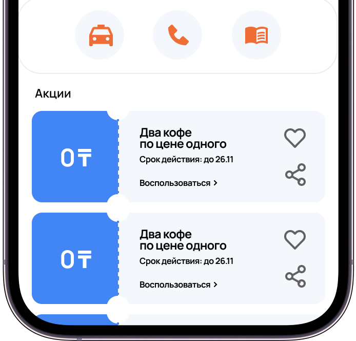 В настоящее время акции доступны в Алматы, но скоро мы запустим их и в других городах, а затем — и в других странах. Следите за нашими новостями в социальных сетях!