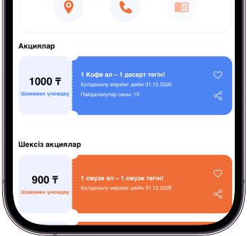 Қазіргі уақытта акциялар Алматыда қолжетімді, бірақ жақын арада басқа қалаларда, сосын басқа елдерде де іске қосамыз. Әлеуметтік желілердегі жаңалықтарымыздан хабардар болыңыз!